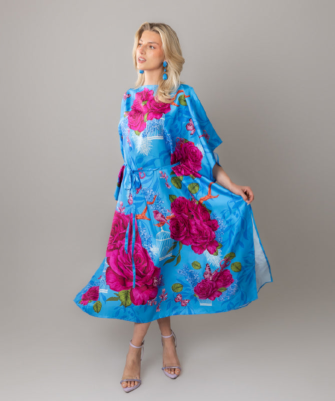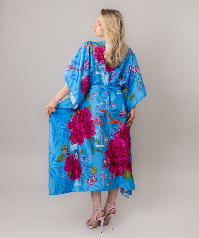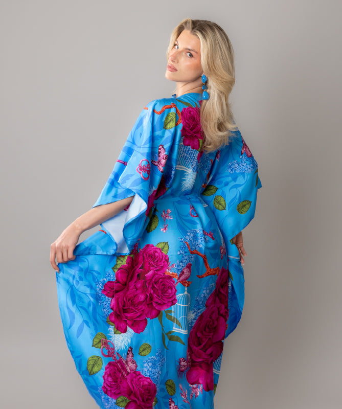 Crafted from 100% heavyweight Italian silk twill, this exquisite kaftan is drenched in a rich, opulent Azure Blue - pure luxury in motion.