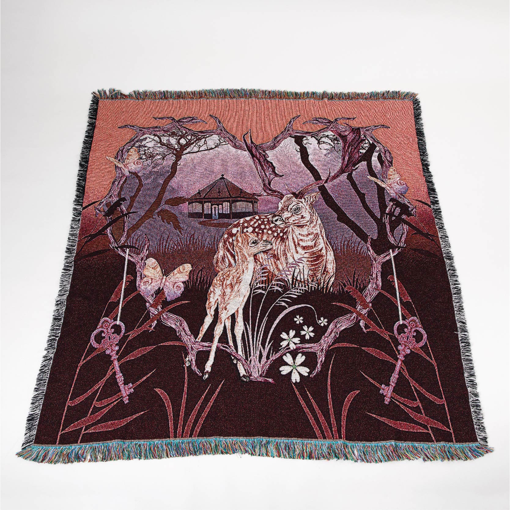 This woven blanket is snuggly but weighty, with soft fringe edging. Excellent for lounging in the living room, flopping on the floor, palatial picnics or even as big wall art!